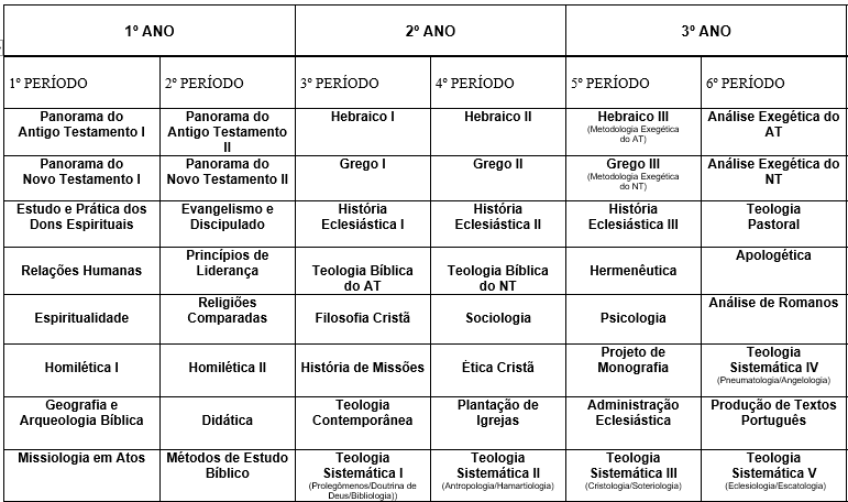 Dias de aula: Segunda, Terça, Quinta e Sexta-feira